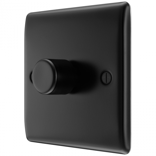 This trailing edge single dimmer switch from British General allows you to control your light levels and set the mood. The intelligent electronic circuit monitors the connected load and provides a soft-start with protection against thermal, current and voltage overload, and is suitable for dimming LED, dimmable CFL's and traditional lighting. Designed with captive screws for ease of installation, the sleek and slim design has a matt black finish with colour match fixing screws and softly rounded edges for a luxurious appearance.