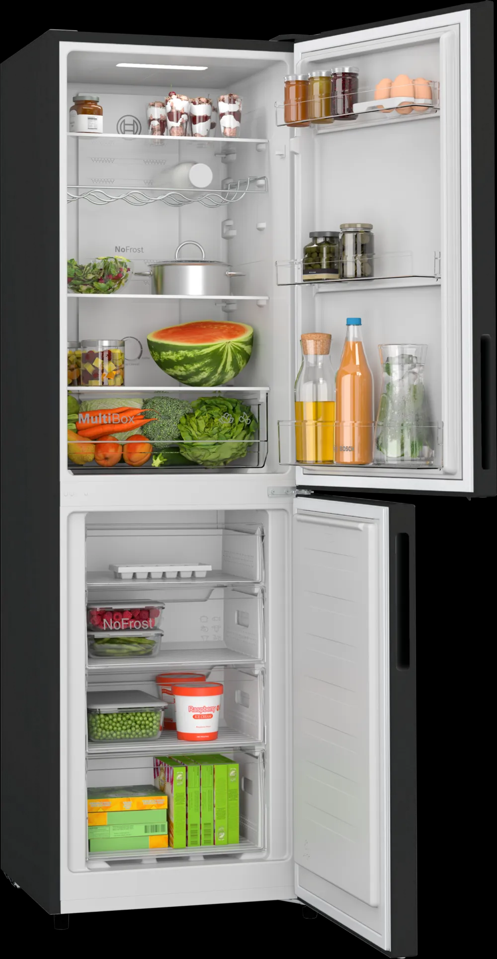 This Bosch fridge freezer has a stylish black finish and an impressive capacity to make it the ideal addition to any home. As this is a freestanding model, you can place it anywhere in your home from the kitchen to a utility room.
