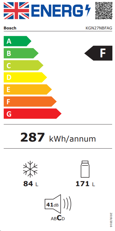 The freezer compartment in the KGN27NBFAG has a four-star freeze rating, so you can safely store food for up to 12 months. You'll also have 10.5 hours of storage in the event of a power failure.
