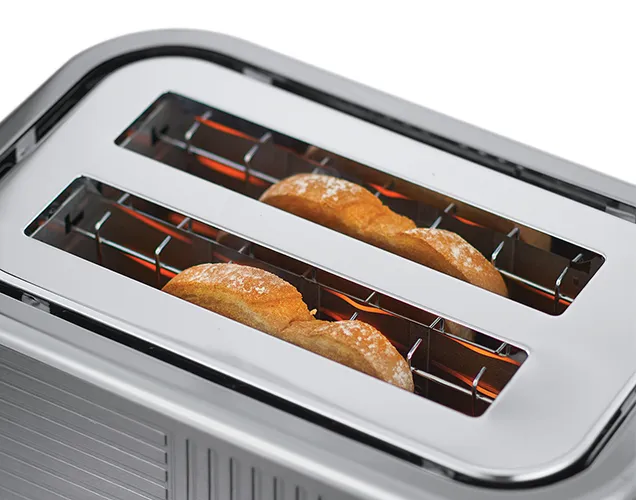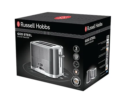 Make a statement in your kitchen with the Geo Steel 2 Slice Toaster that comes in a Gunmetal Grey Stainless Steel with Polished Accents. Its eye-catching and unique Textured Metal Design breaks new ground with the materials used as well as its geometric aesthetic. Adding a premium touch to your kitchen counter, this contemporary toaster will make a lasting impression, every morning at breakfast. Its Clear Illumination lights up when your toaster is on and toasting, whilst adding to its high-tech design. The toaster's Wide Chassis means you can toast a wider selection of breads, letting you really enjoy those chunky slices that satisfy the most!