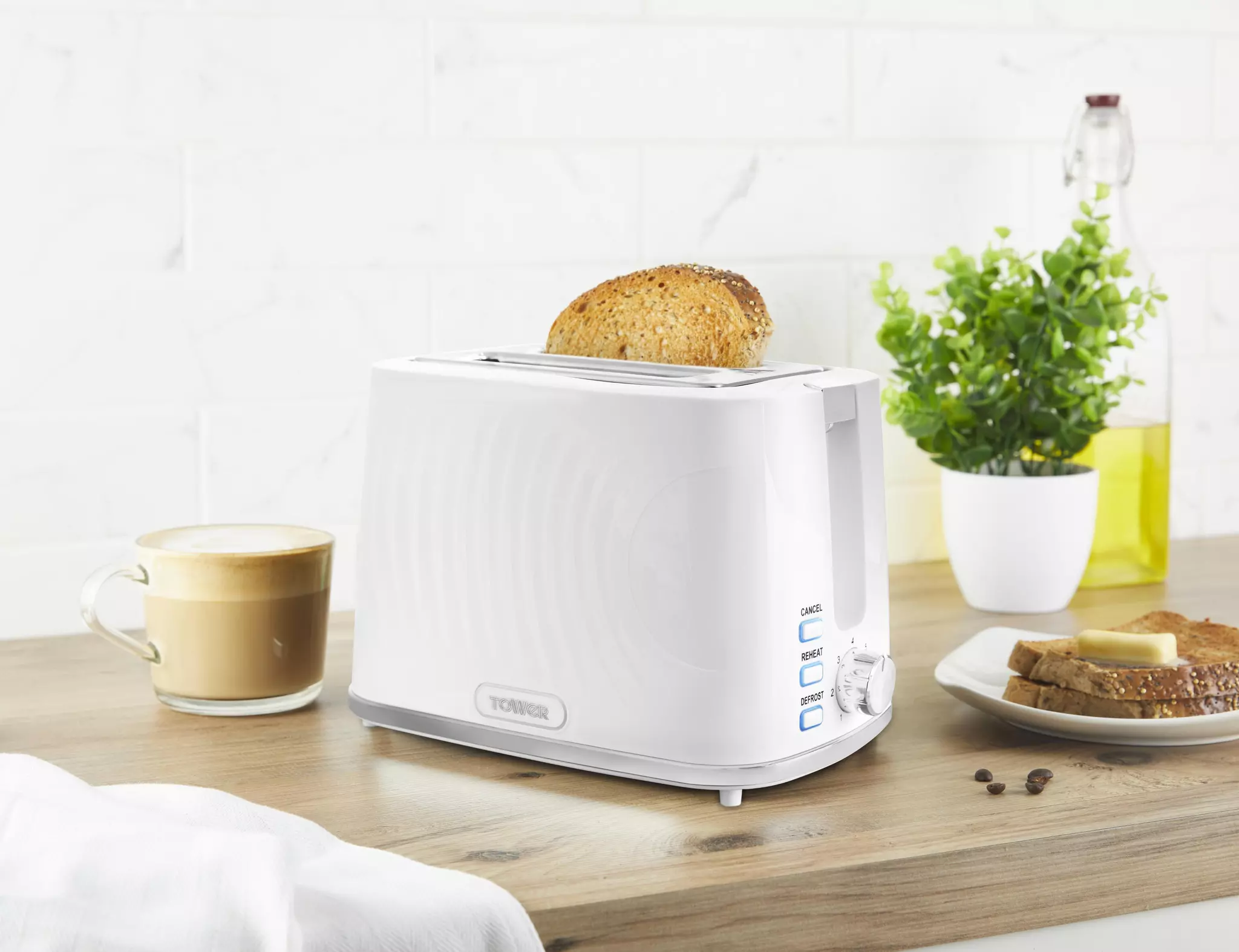 This 2-slice Toaster from Tower brings modern style to the kitchen, with a unique ripple effect that adds texture and a high-class feel to the home. The 7 browning levels allow you to create toast that suit your tastes and make family breakfasts simple. Complete with defrost, reheat and cancel functions, you can cook from frozen, warm up any forgotten slices and cancel whenever it suits you. The self-centring function keeps each slice aligned to the middle of slots for even toasting on both sides, with a removable crumb tray that minimises mess. Integrated cord storage will keep wires presented neatly on your countertop, whilst a quick wipe with a damp cloth is all that is required to keep it in pristine condition.